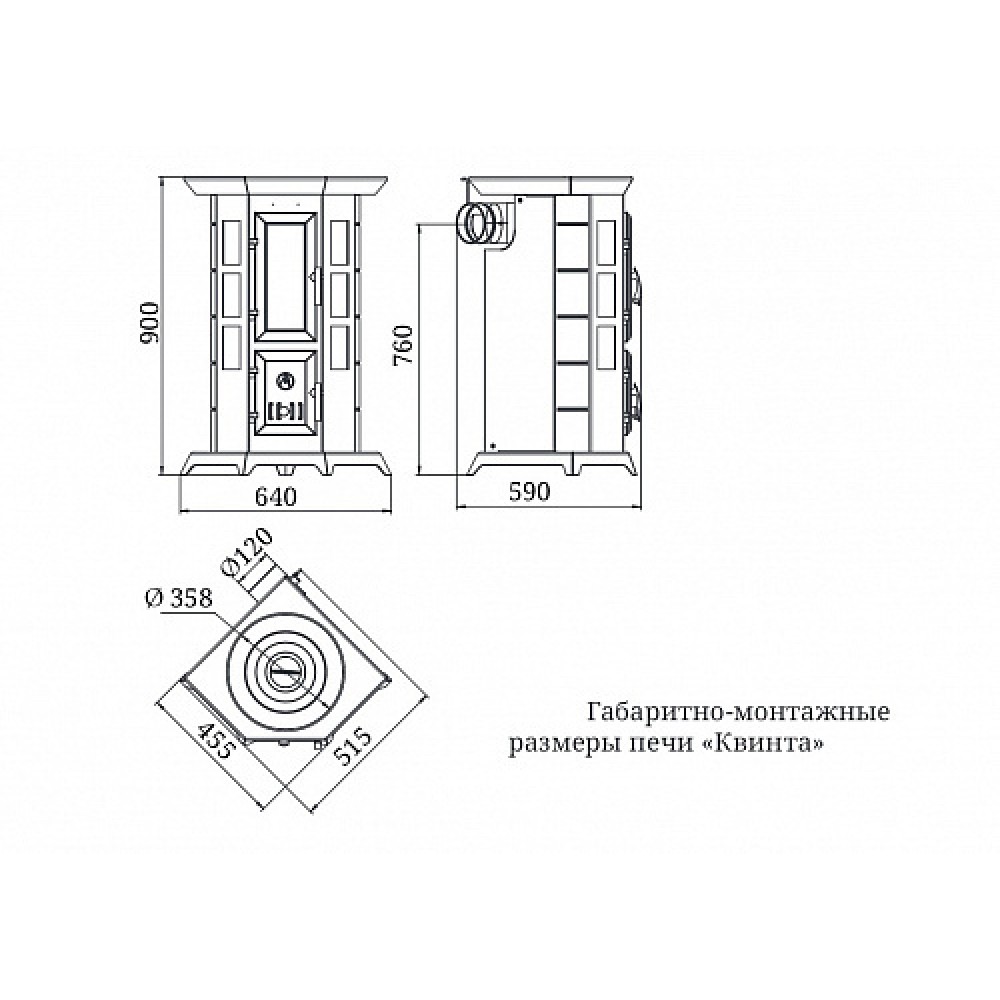 Технические характеристики Дровяная печь TMF ПО Статика Квинта, черная бронза