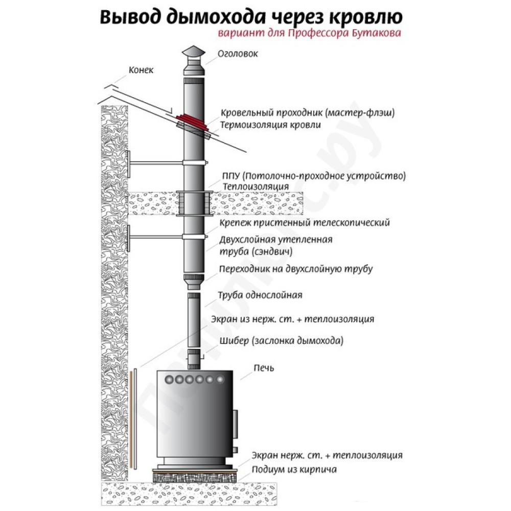 - Печь имеет встроенное устойчивое основание с отверстиями для крепления к полу