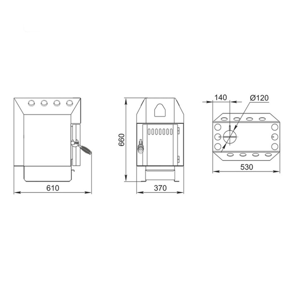 | Вид топливаДрова | Высота, см66 | Габариты (ВхШхГ), мм660х370х610 |