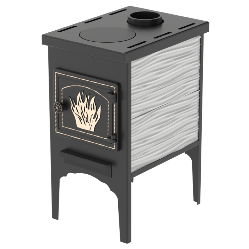 Отопительная печь Везувий В5 используется для обогрева помещений, объём которых не превышает 100 м3. Чугунная дверца и стальной корпус обеспечивают равномерный обогрев и высокую производительность. Керамическое покрытие придаёт дизайну печи эстетичность. Варочная оверхность позволяет разогревать чайник и готовить пищу в доме.