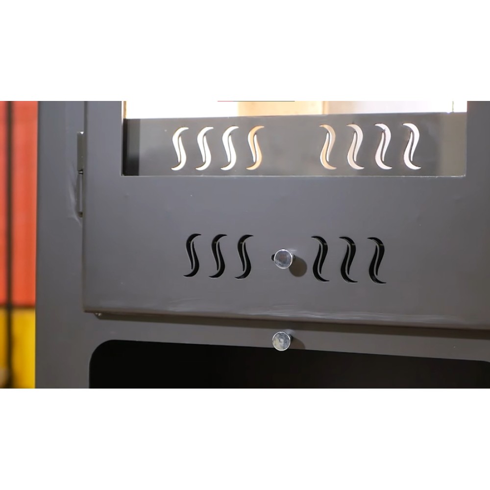 ASTON (Астон) 11кВт Угловой - печь-камин с пристенной установкой в угол помещения. Такой способ размещения позволит сэкономить полезное пространство внутри. Надежная сталь выдерживает высокие температурные нагрузки, а дополнительное покрытие плитами из вермикулита повышает показатель надежности и долговечности.