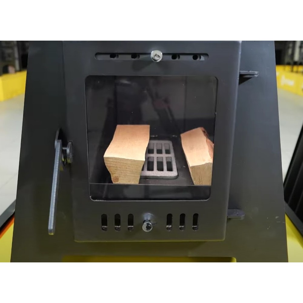 - Конструкция печи включает в себя топку с пламегасителем и каналом вторичного дожига.