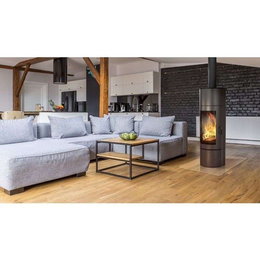 Стальная печь Kratki (Кратки) ANTARES – первоклассная современная топка цилиндрической конфигурации с панорамным остеклением. Данная модель выполнена в элегантном стиле. Дверца ниши оснащена системой «Клик-Клак», которая не требует никакой ручки. Материал корпуса устройства – сталь с покрытием черного цвета. Для стабильной работы оборудования подача воздуха для обеспечения горения производится извне. Наличие вынимаемого зольного ящика значительно облегчает чистку прибора от отходов горения топлива. Повышению КПД способствует система вторичного дожига, которая также помогает уменьшить загрязнение дымохода. Дровяная печь великолепно обогреет помещения площадью до 120 кв.м.