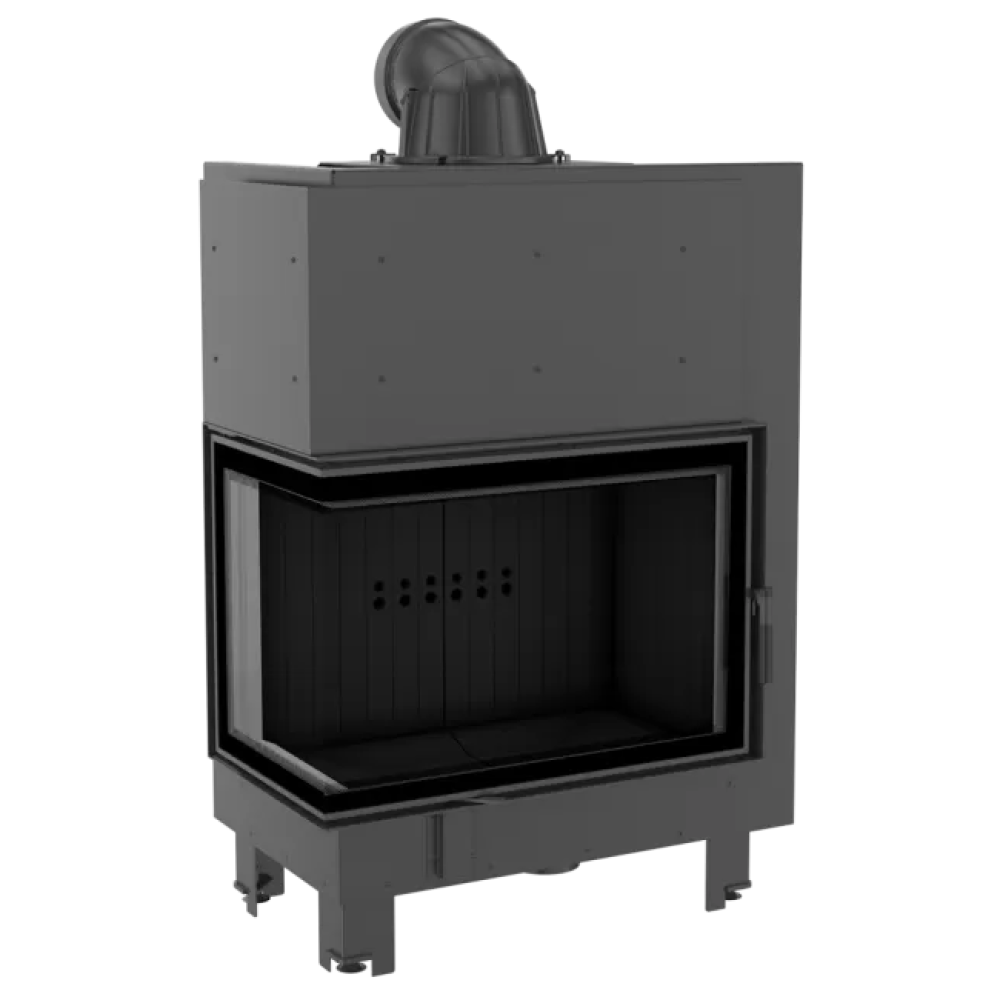 Угловая левая дровяная топка Kratki MBA/L/BS/SG (гнутое стекло) черная футеровка