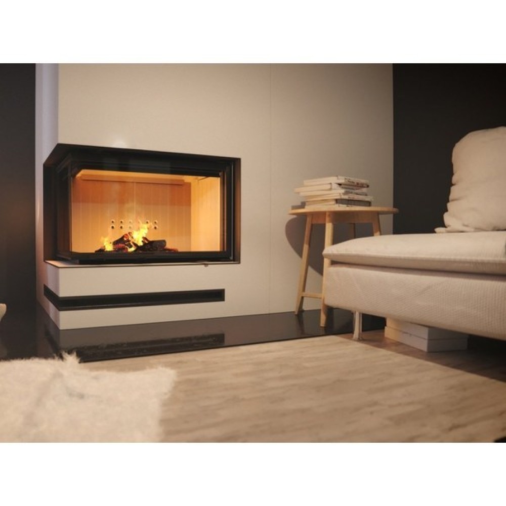 Стальная топка Kratki (Кратки) MBO/L/BS/G/SG (гнутое стекло) предназначена для монтажа камина угловой конструкции. Большая камера сгорания футерована современной керамикой Acumotte и прикрыта двухсторонним просмотровым стеклом. В камине реализован принцип подового горения. Для удобства прибор оснащен дымоходом с поворотным регулированием.