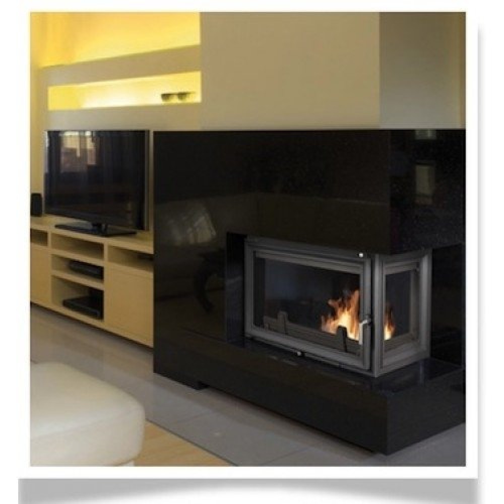Oliwia P (стекло справа) – чугунные топочные камеры польского предприятия Kratki, которое производит большой ассортимент каминной продукции. Чугунные топочные камеры закрытого типа это безопасный в эксплуатации камин (топка с облицовкой). Огнеупорное стекло из стеклокерамики немецкой фирмы Robax надёжно предохраняет помещение от выстреливающих искр, а дополнительное остекление с правой стороны топки отрывает большой обзор, а также позволяет угловую установку камина.