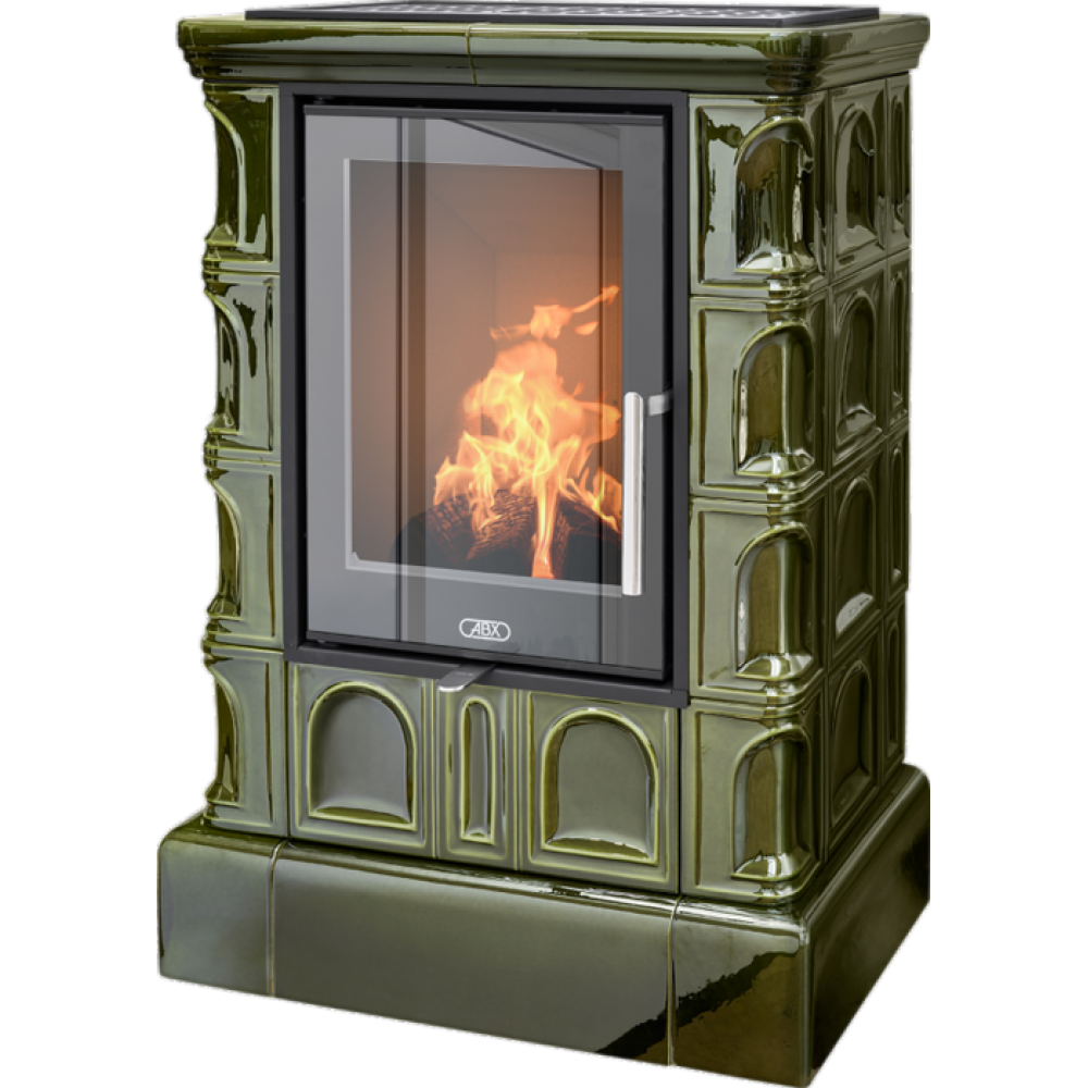 Дровяная печь ABX Britania EXclusive кафельный цоколь, зеленая