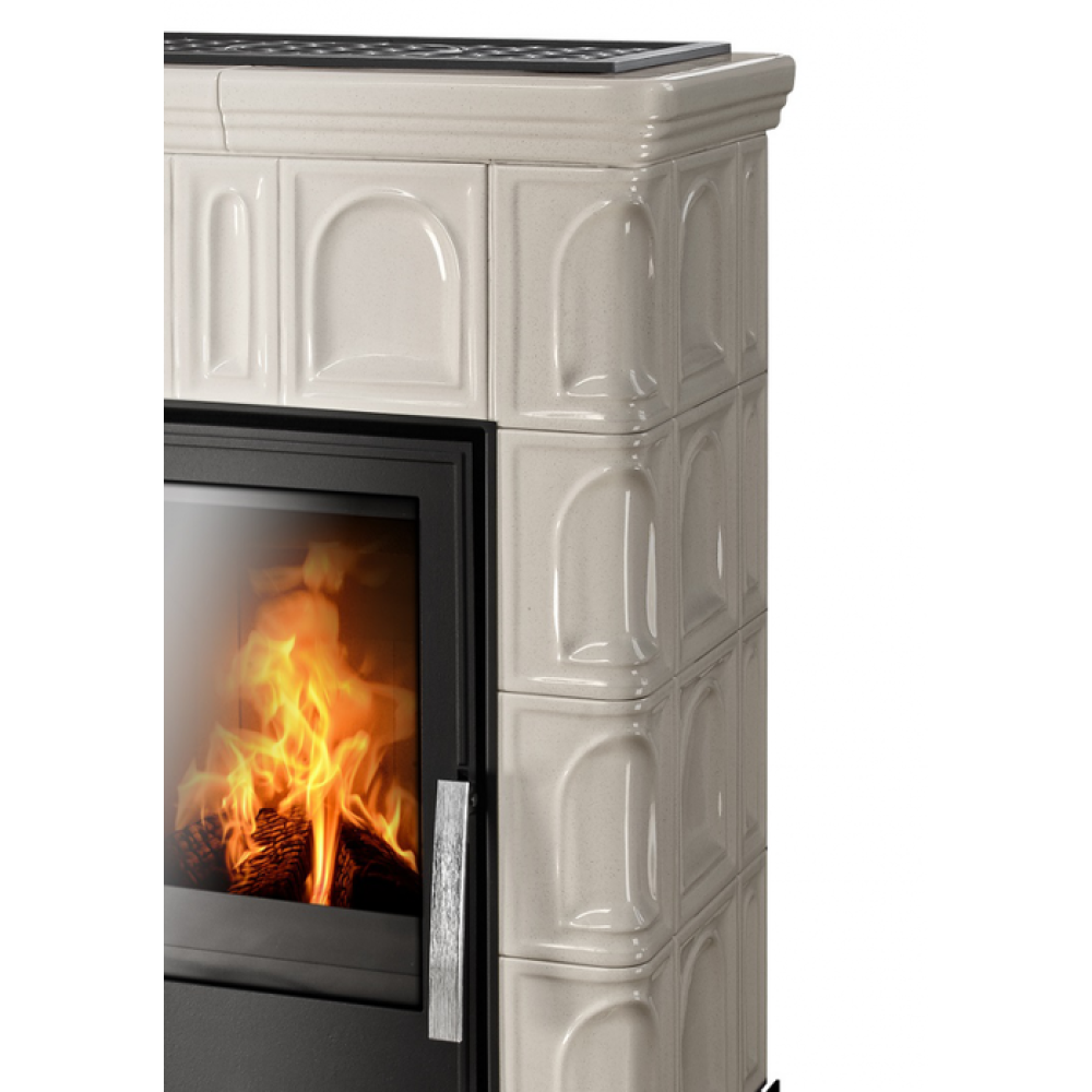 Кафельная печь ABX Britania K белый цоколь, перламутр — настоящий шедевр для вашего интерьера. Эта элегантная печь обладает конусообразной дровницей, стальным корпусом топки и прочной чугунной дверцей. Используя систему «чистое стекло» и прямое остекление, она позволяет наслаждаться зрелищем танцующих языков пламени внутри камина, создавая уютную атмосферу и оставляя приятные воспоминания.