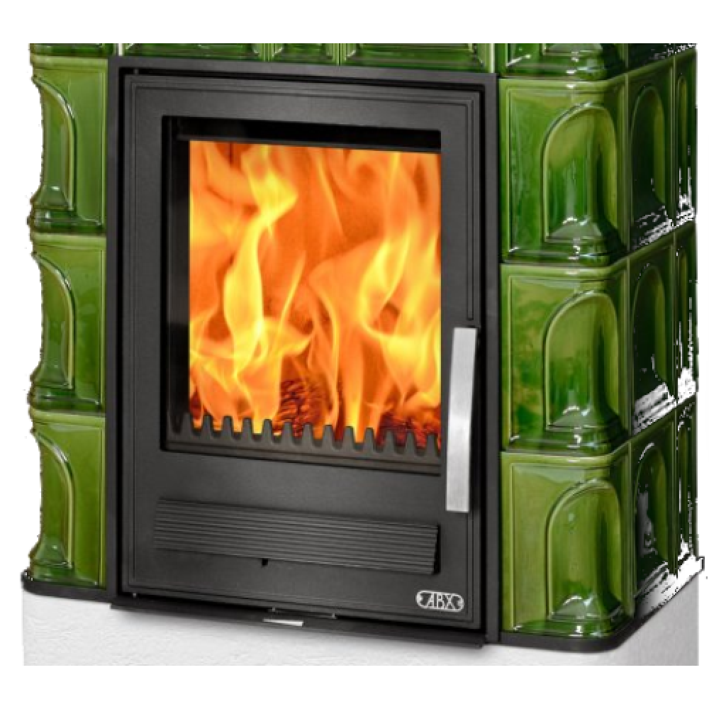 Дверца камина-печи с кафельной облицовкой ABX Britania LPI белый цоколь, зеленая изготовлена из надежного жаростойкого стекла, которое способно выдержать высокие температуры. Благодаря системе чистое стекло можно любоваться вечерами на играющие языки пламени. Топка изготовлена из жаропрочного материала, отличающегося прекрасной теплоотдачей.