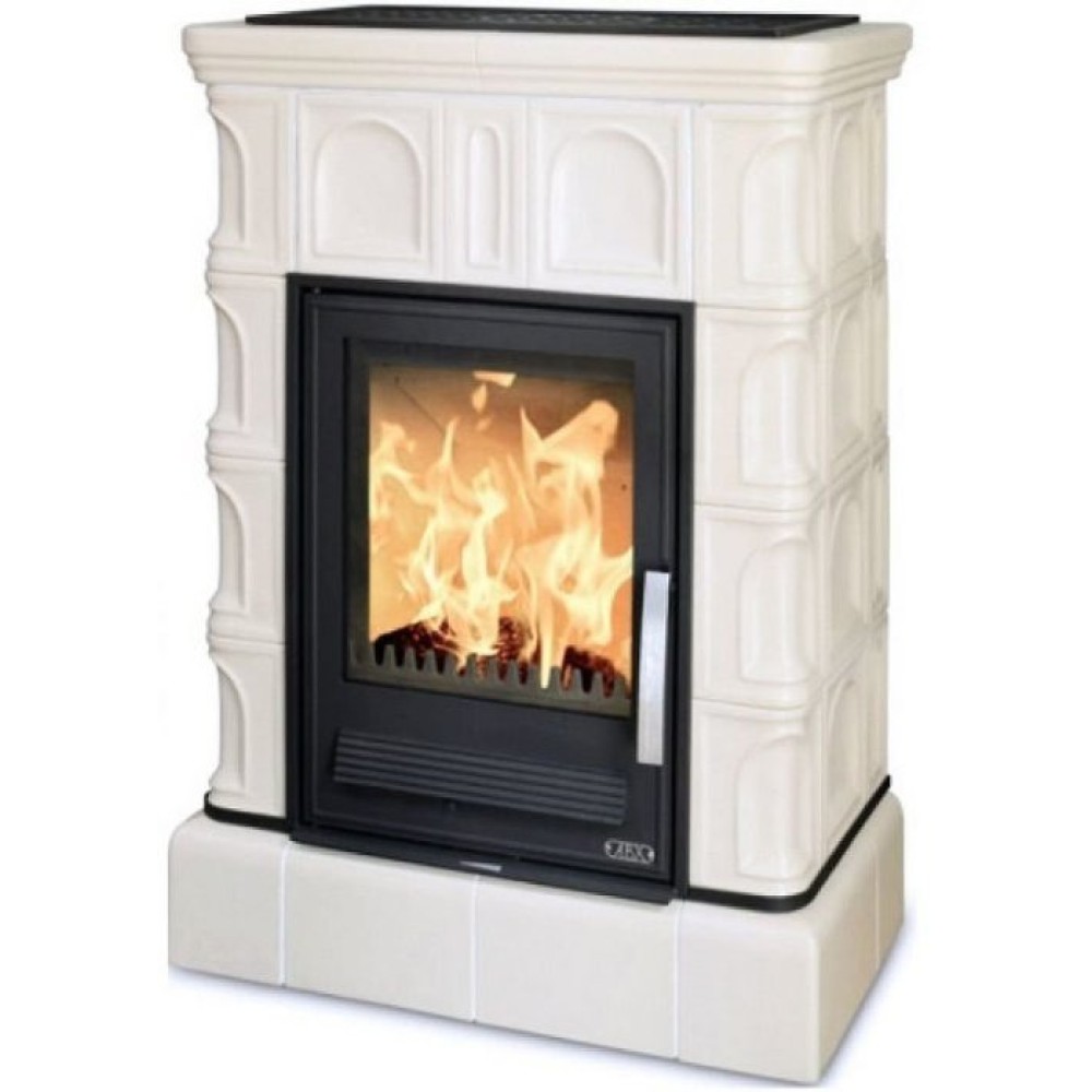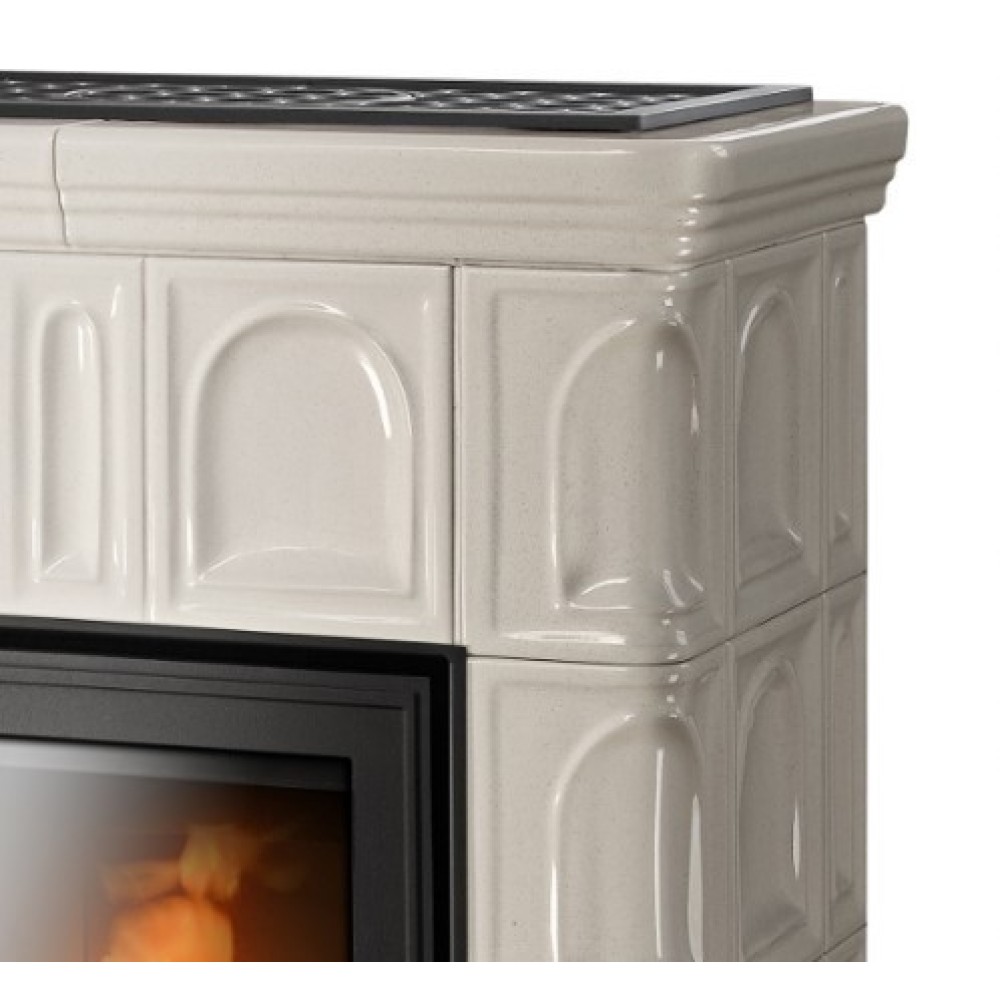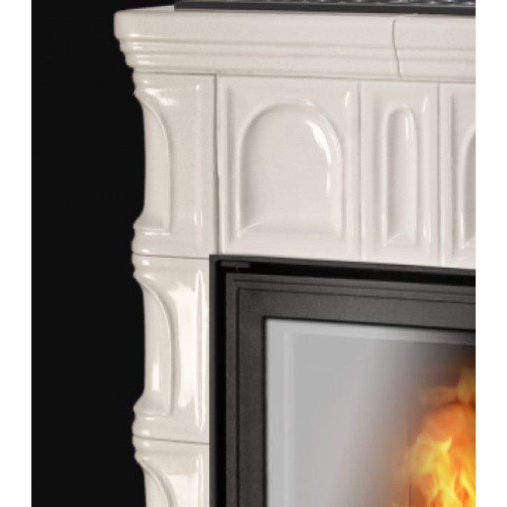 Кафельная печь-камин ABX Britania LPI кафельный цоколь, перламутр из чугуна дольше нагревается, однако и отдаёт тепло намного дольше, чем стальная топка. Благодаря этому даже после полного прогорания дров или брикетов в комнате ещё долго сохраняется тепло и атмосфера уюта. Стеклянная дверца позволяет наслаждаться игрой пламени в печи.
