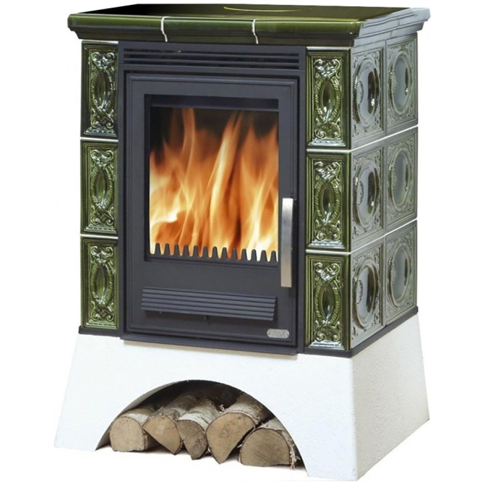 Дровяная печь ABX Helvetia K белый цоколь, зеленая