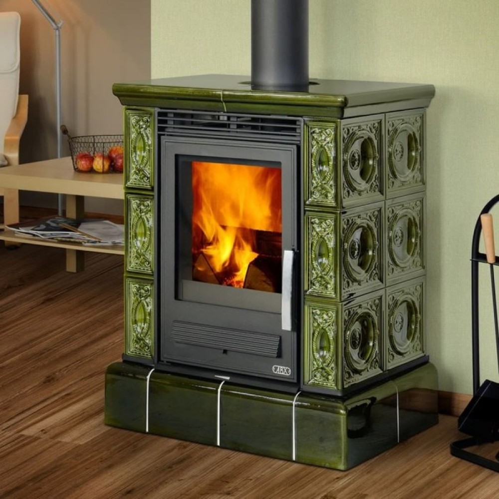 Дровяная печь ABX HELVETIA KPI кафельный цоколь, зеленая