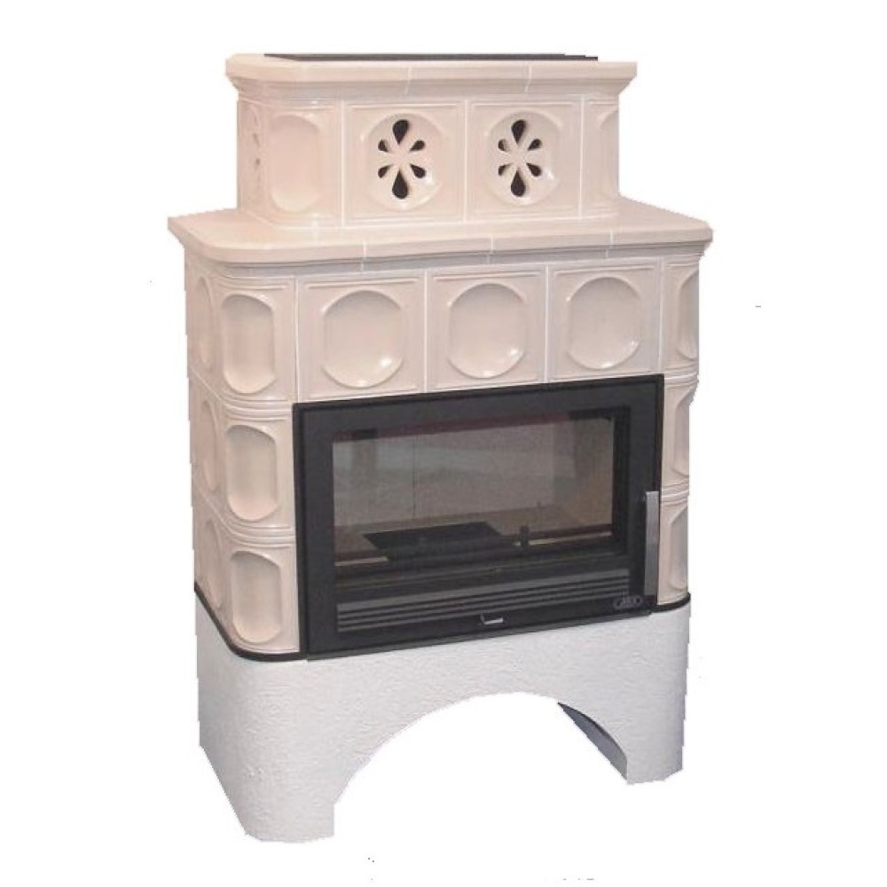 ABX (ЭйБиЭкс) Karelie белый цоколь, перламутр - кафельная дровяная печь, произведенная из стали. Модель отличается высокой производительностью действия и удобством размещения. Каминная печь предназначена для установки в жилых помещениях в коттедже или частном доме. Благодаря облицовке из кафеля и необычной форме прибор обладает стильным дизайном.