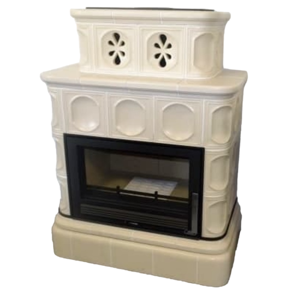 Современная кафельная печь ABX (ЭйБиЭкс) Karelie кафельный цоколь, песчаная обладает высоким качеством исполнения, компактными размерами и изысканным дизайном. Модель может стать главным украшением любого интерьера. За счет кафельной облицовки прибор не только выглядит стильно, но и долго сохраняет тепло даже при погасших дровах. Агрегат оборудован надежной дверцей с огнеупорным стеклом.