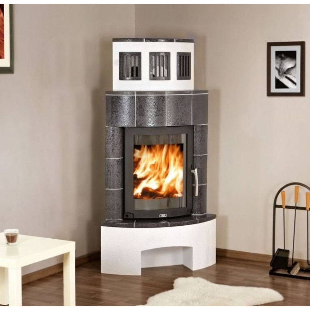 Кафельная печь ABX (ЭйБиИкс) Normandie угловая, хаматит имеет небольшие габаритные размеры, а кроме того устанавливается в углу, что позволяет экономить свободное место в помещении. Камин представляет собой топку из стали, облицованную изнутри специальным материалом для устойчивости к высоким температурам. Дверца оснащается огнеупорным стеклом.