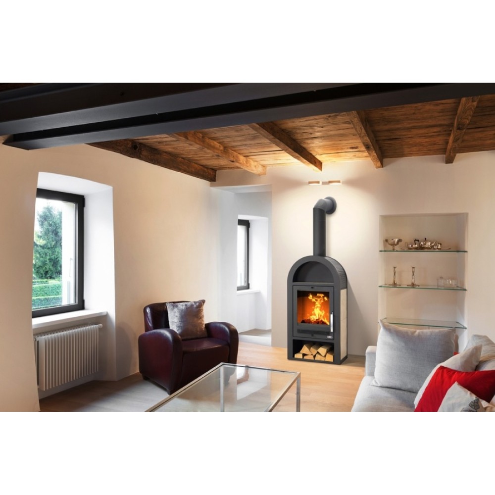 Дровяная печь ABX Stockholm12 (7кВ в воду) керамика способно напрямую обогревать окружающее пространство, а также может являться частью водяной отопительной системы в доме. Устройство выполнено в современном стиле и облицовано с боковых сторон высококачественной итальянской керамикой.