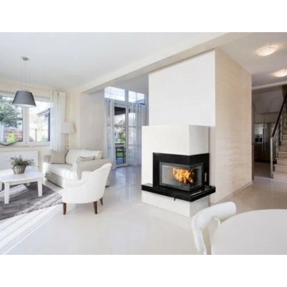 Дровяной камин ABX (ЭйБиИкс) Pateo угловой гранит черный, правый – это цельное, готовое к установке устройство, оснащённое топкой из жаропрочной стали, фумитированной вермикулитом. Камин может использоваться в качестве дополнительного источника обогрева в небольших помещениях загородного дома.