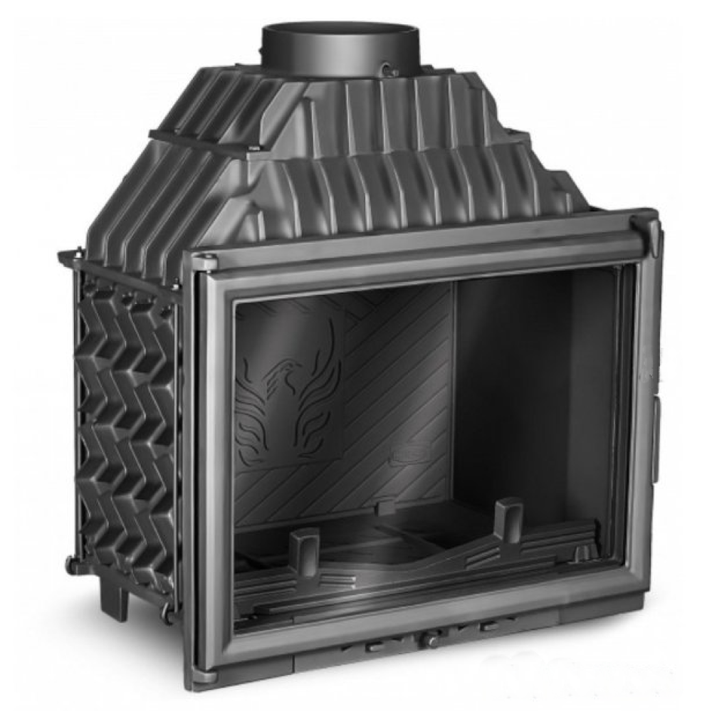 Каминная топка Kawmet W11 18,1 кВт в верхней части имеет два патрубка, через которые происходит подача воздуха на стекло, делая своеобразную воздушную штору, защищающую от загрязнения стекло. Дрова и камина не выпадают, потому что есть чугунный барьер в топочной камере. Регулируемая подача воздуха.