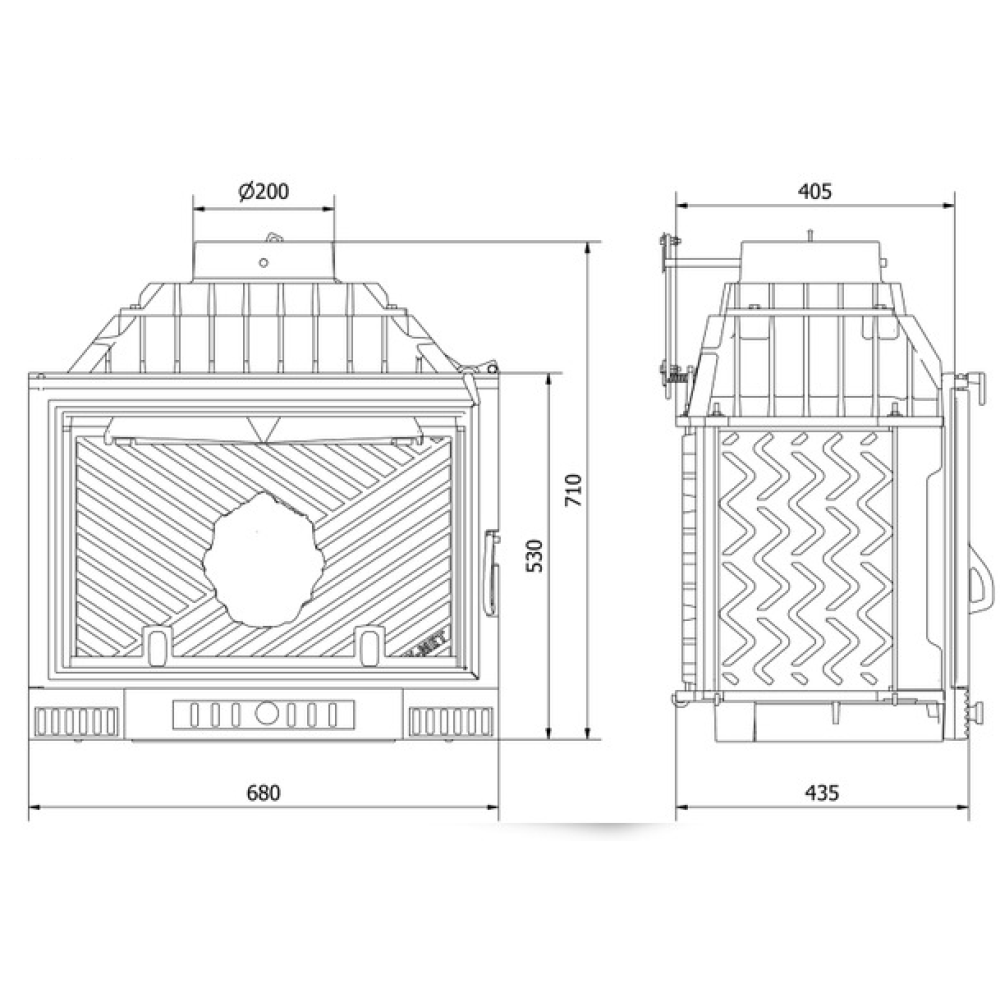 | D сопла, мм200 | Вес, кг150 | Вид топливаДрова |
