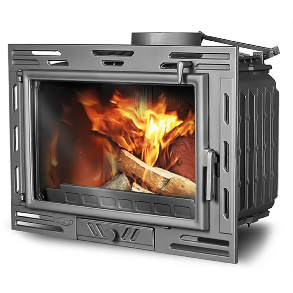 Каминная топка Kawmet W9A 9,8 кВт EKO имеет переднее плоское стекло на отрывающейся в бок дверце. Съемная задняя стенка толщиной 20мм.Коэфициент полезного действия топки увеличивается за счет радиаторов, которые плотно расположенные. Дерево используется, как топливо. Есть возможность регулировать подачу воздуха.
