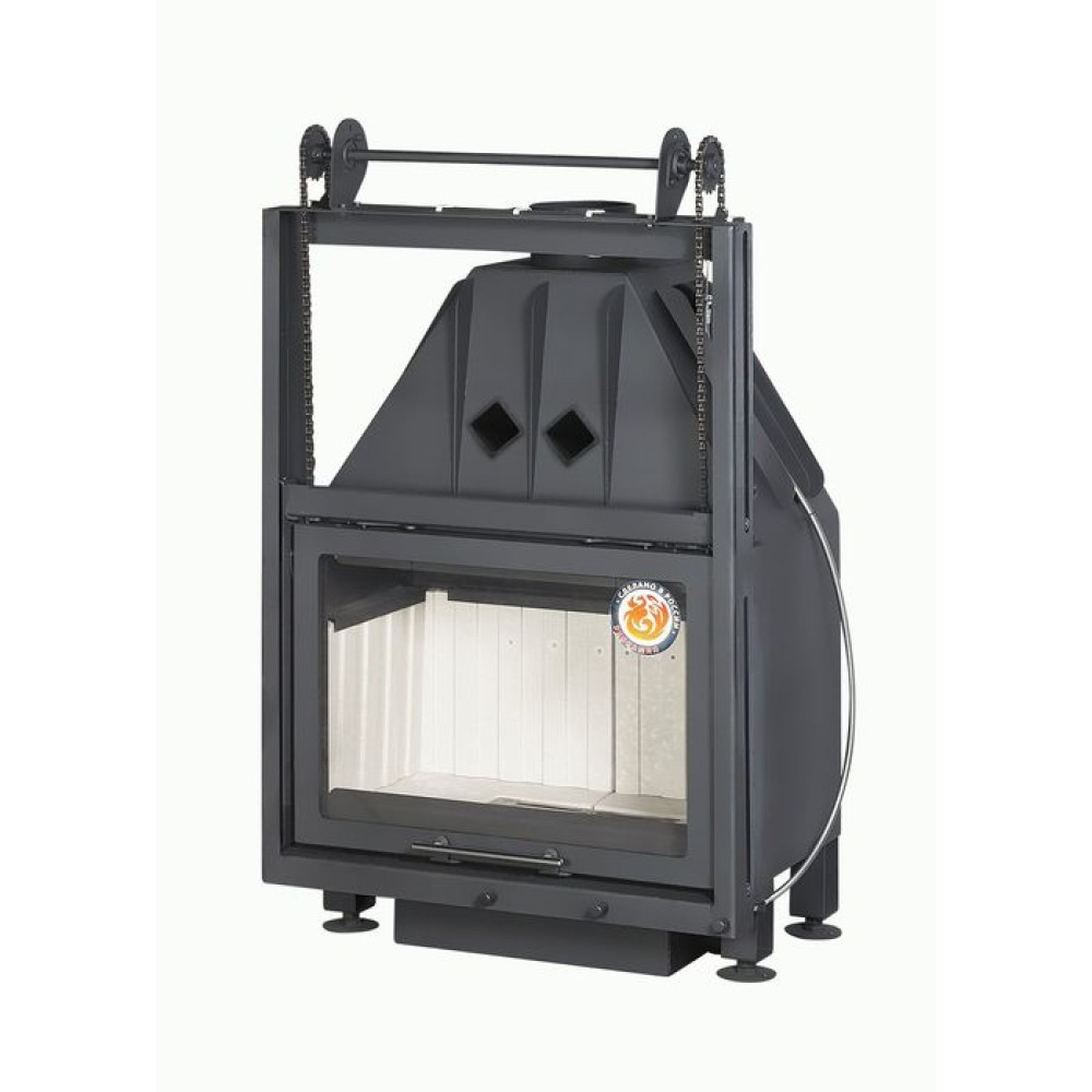- Высокий дымосборник и пламя рассекатель не позволяют дымовым газам попадать в помещение при открывании дверцы