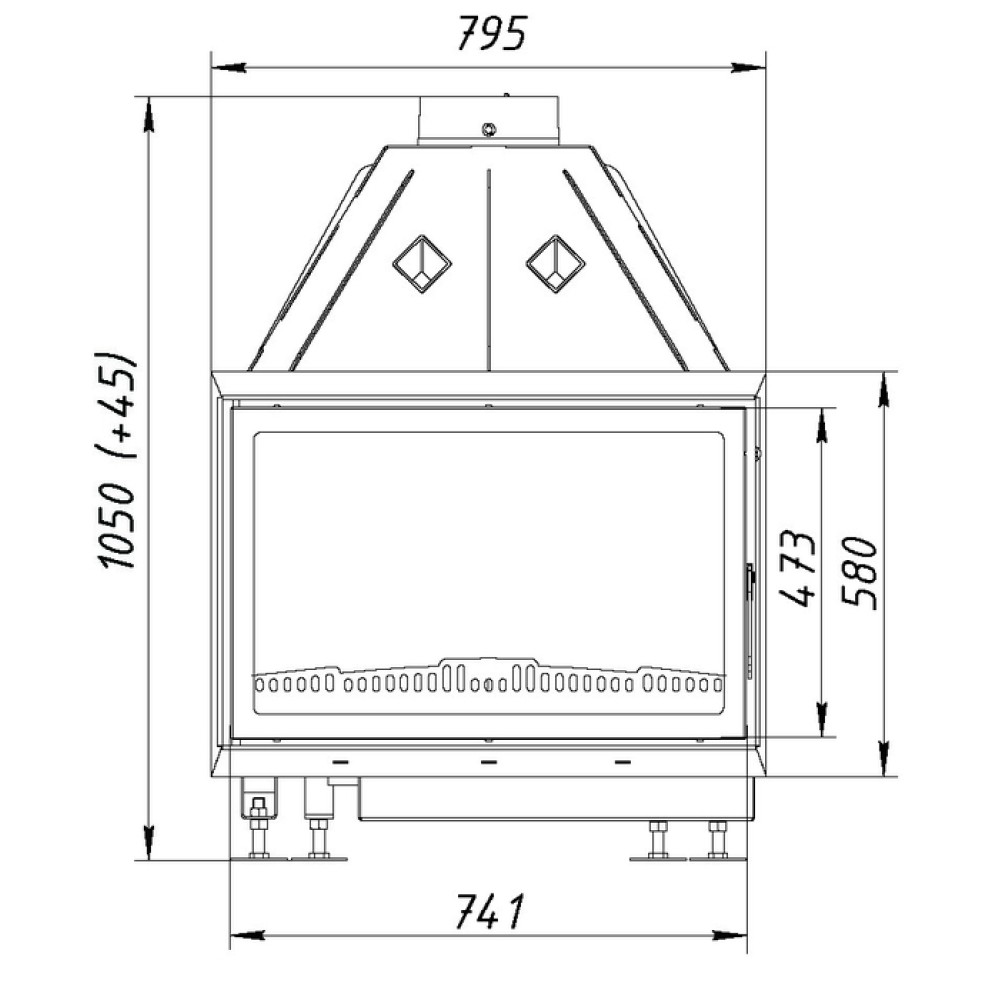 Технические характеристики Фронтальная дровяная топка ЭКОКАМИН Альфа 800