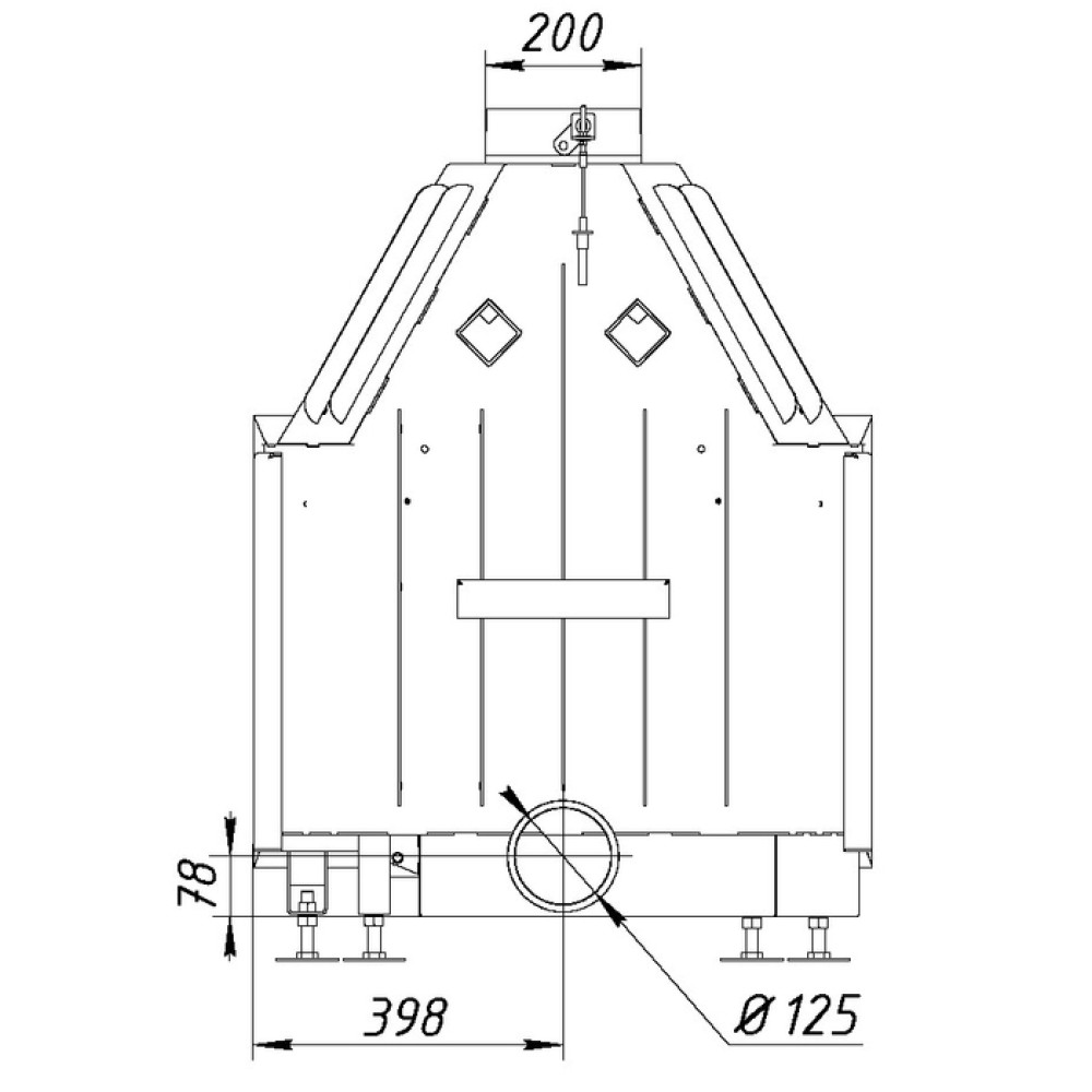 | D сопла, мм200 | Вес, кг140 | Вид топливаДрова |