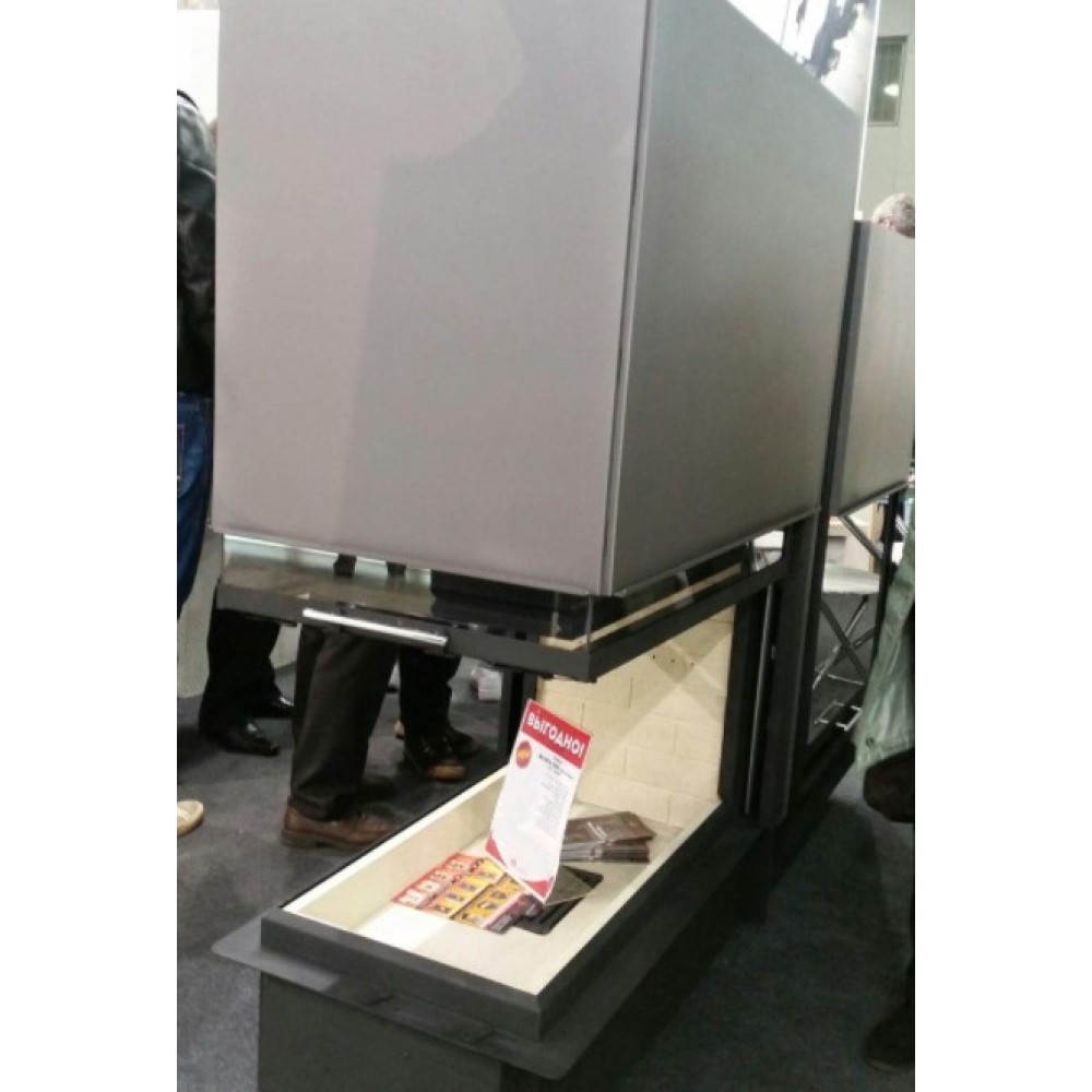 - П-образное трёхсторонее стекло с принтингом позволяет наблюдать за горением практически с любого места помещения.