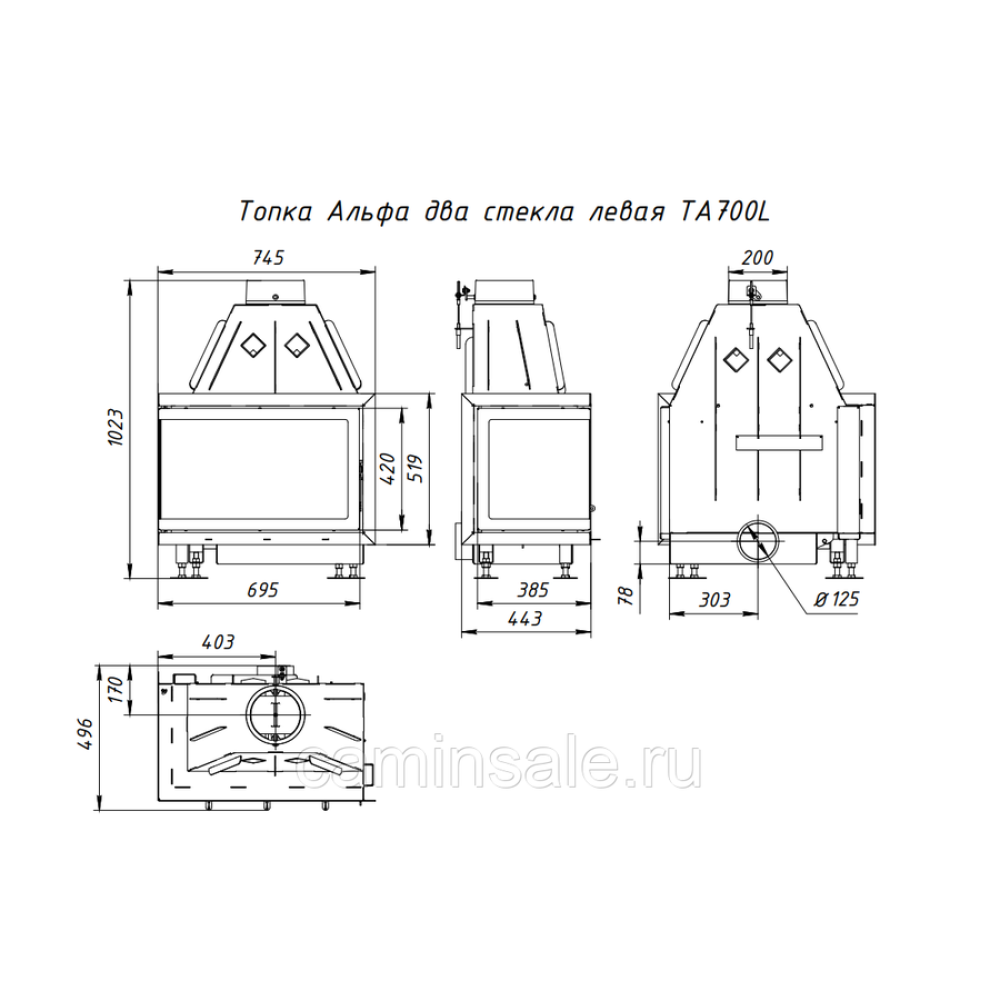 Технические характеристики Угловая левая дровяная топка ЭКОКАМИН Альфа 700 два стекла левая