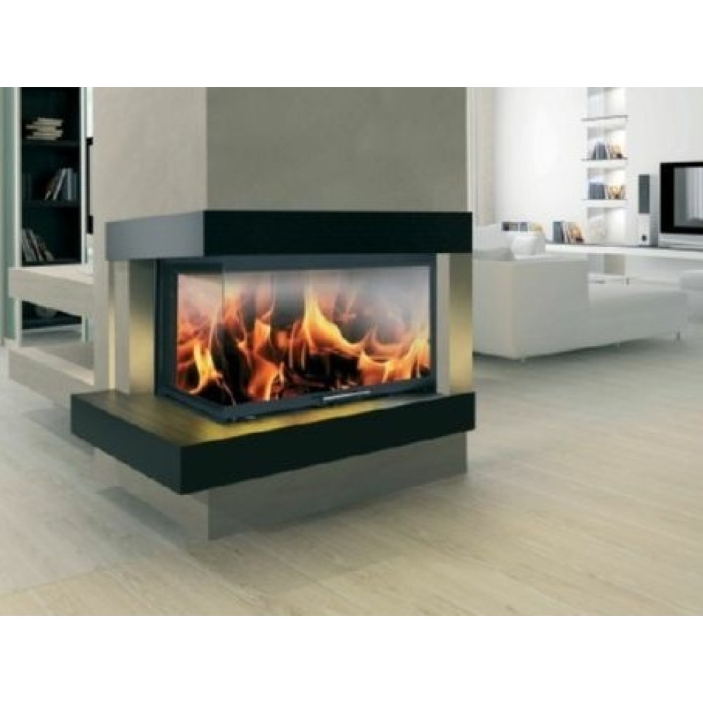 - Г-образное двухстороннее стекло с принтингом позволяет наблюдать за горением практически с любого места помещения.