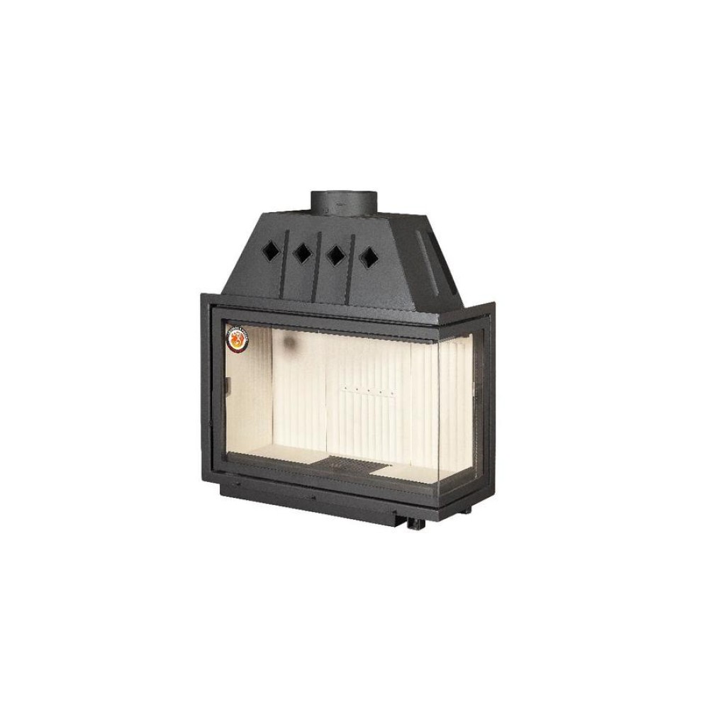 Дровяная топка БАВАРИЯ Альфа 1000R два стекла правая выполнена из материалов высокого качества и рассчитана на помещение площадью 150 кв. метров. Топка имеет угловое исполнение и оснащена двухсторонним стеклом из жаростойкой керамики. Для регулирования интенсивности горения предусмотрена чугунная шиберная заслонка.