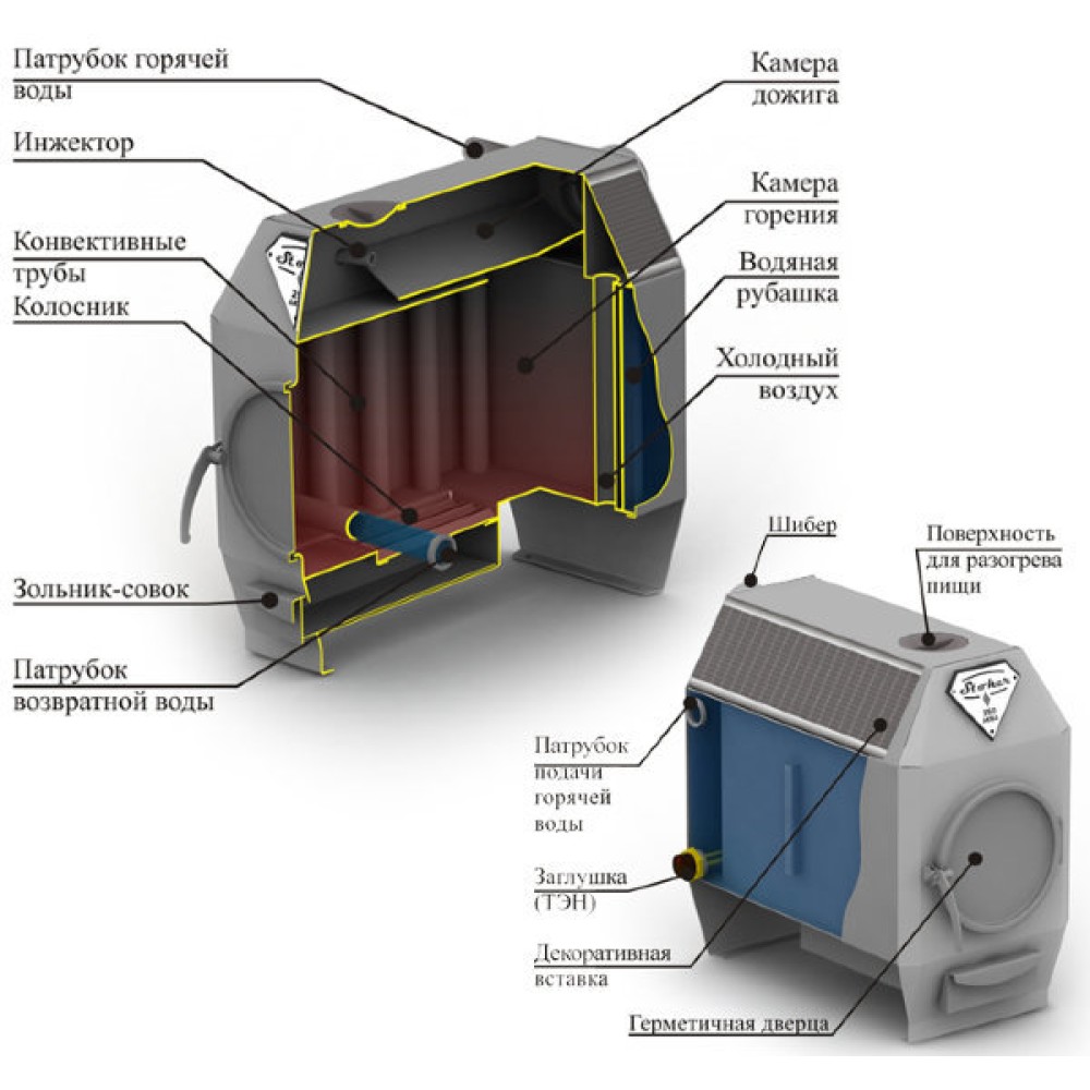 Отопительные изделия марки Ермак занимают одну из лидирующих позиций в производстве печей в России. Среди широкого ассортимента отопительных печей можно выделить серию дровяных моделей с воздушным и водяным контуром Ермак-Термо. Преимуществом этих моделей является использование эффекта длительного горения.