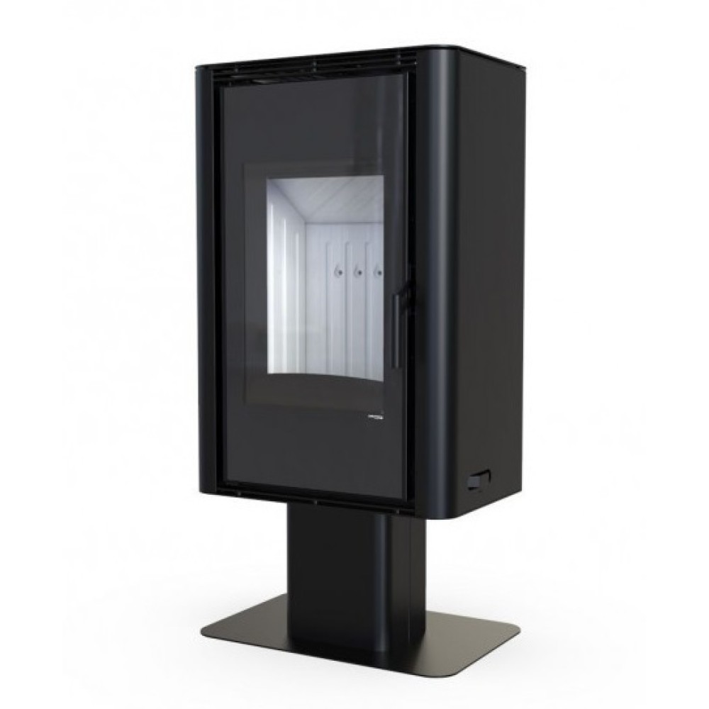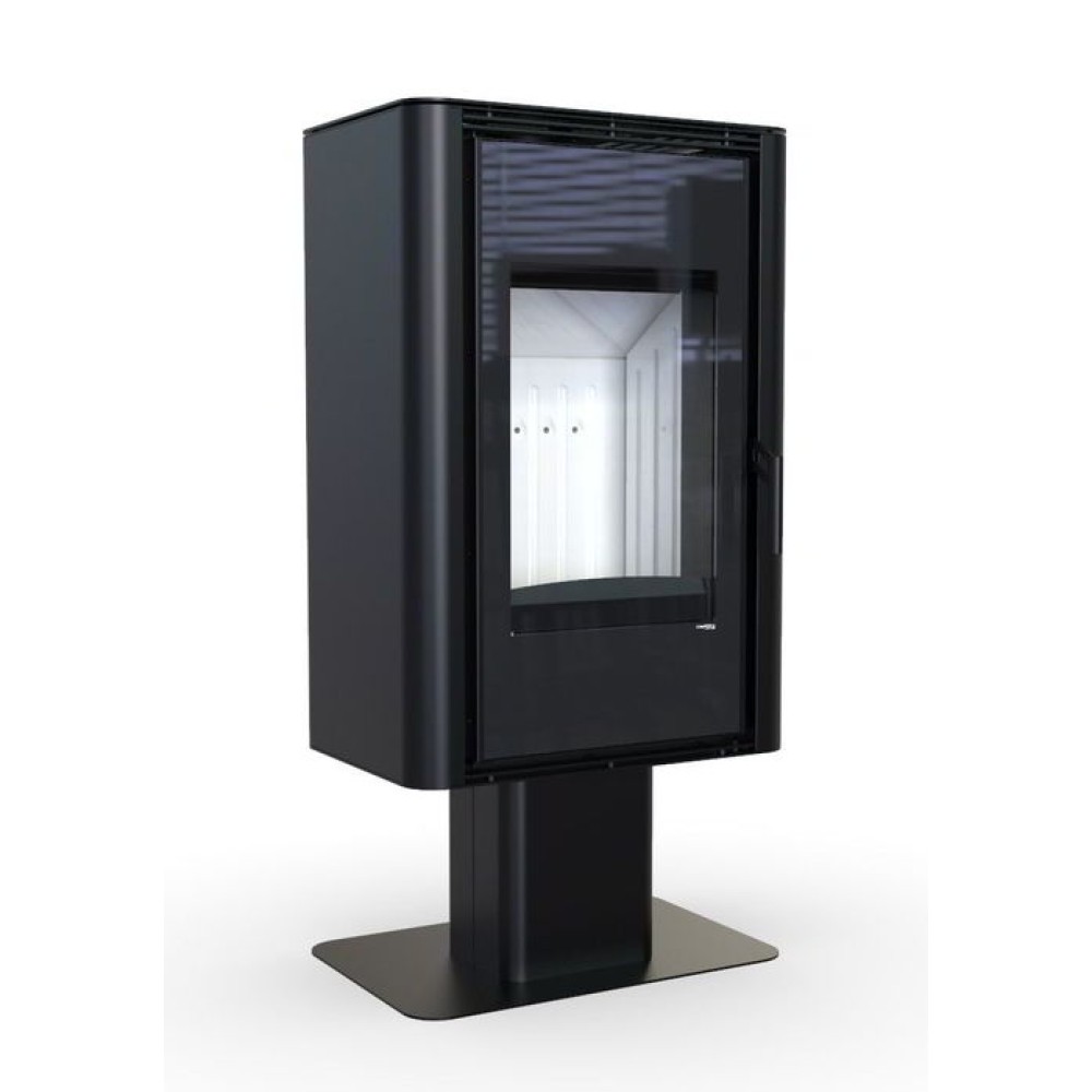 Дровяная печь DEFRO (Дефро) HOME SOLUM TOP, черная сталь обладает строгой формой и стильным дизайном. Камин установлен на стальном пьедестале, благодаря которому не требуется дополнительной изоляции пола. Прибор способен привнести в дом атмосферу уюта и обогреть пространство вокруг себя.