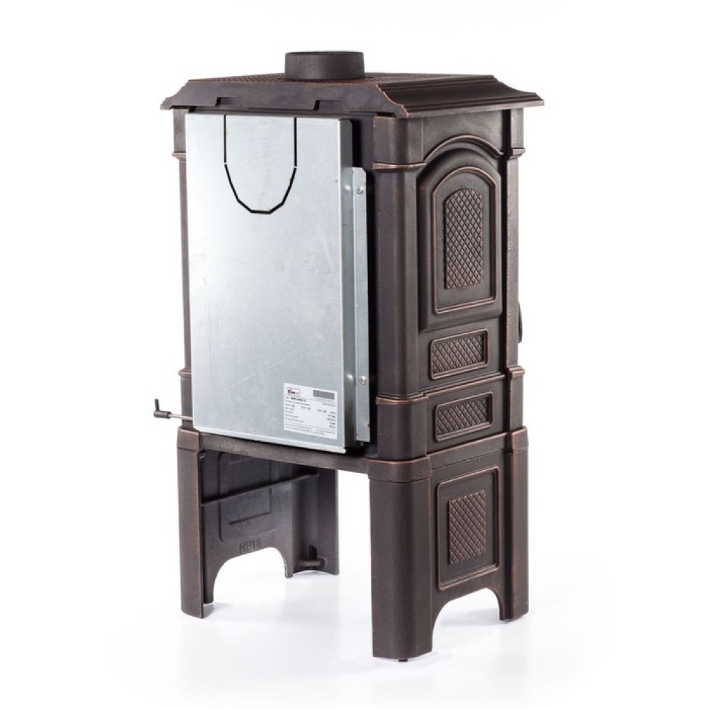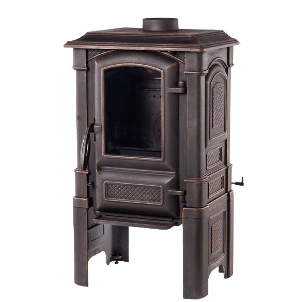 Печь-камин Fireway (Фаервэй) BRUNO II патина медь имеет тепловую мощность 8 кВт, которой достаточно для обогрева помещения объёмом до 170 метров кубических. Устройство нагревается во время работы, поэтому необходимо соблюдать меры предосторожности. Камера сгорания выполнена из толстостенного чугуна, что говорит о надёжности прибора и продолжительности рабочих процессов.