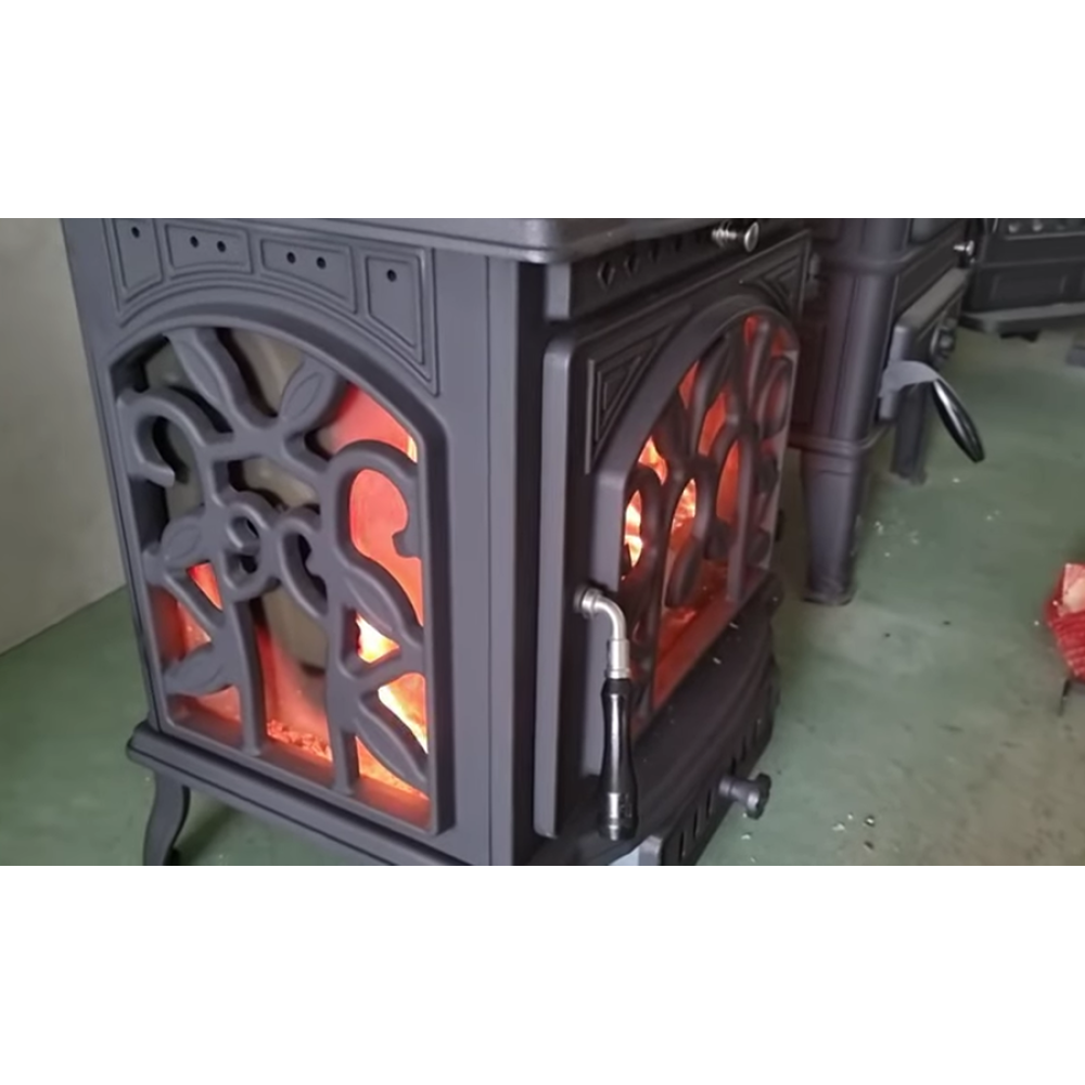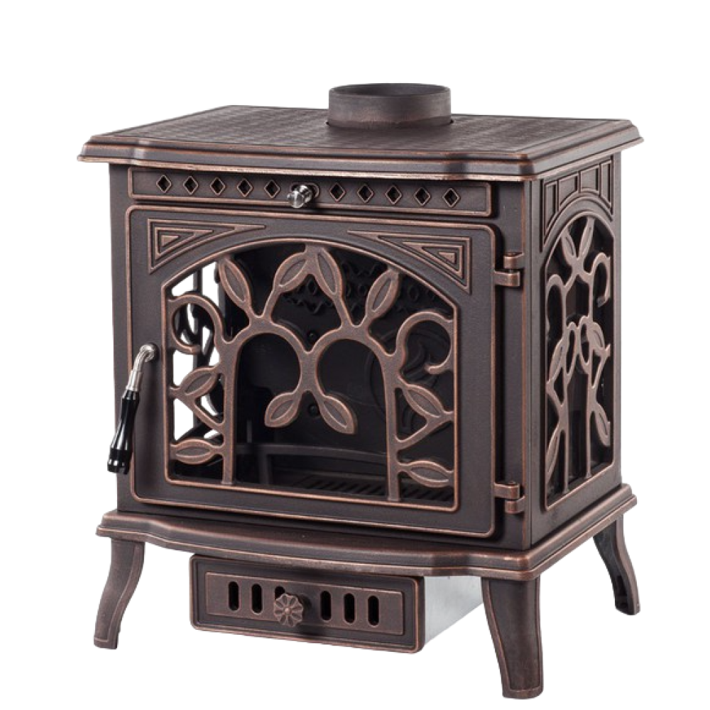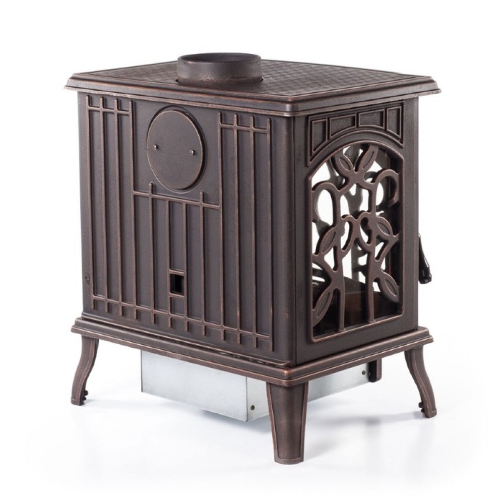 Оригинальная чугунная печь Fireway (Фаервэй) DEMETRA патина медь устанавливается на ровной поверхности на тонких изящных ножках в любом удобном месте при условии организации системы отведения продуктов сгорания, т.е. монтажа дымохода. В камеру сгорания воздух попадает из разных мест – снизу или сверху, а дожиг газов происходит через заднюю стену.