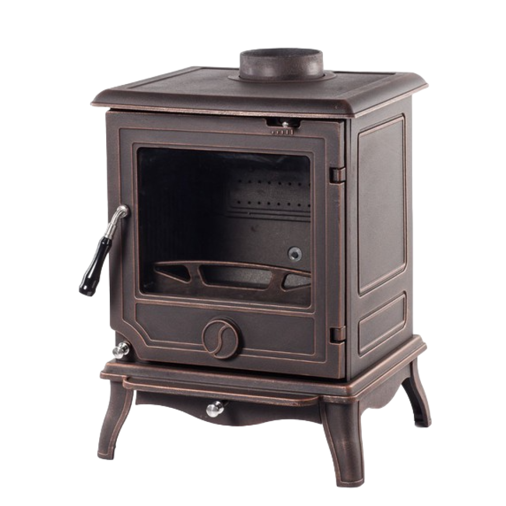 Компактная печь Fireway (Фаервэй) FINN патина медь с длительным временем горения устанавливается в помещении до 100 квадратных метров. Конвекционная составляющая слабая, но есть, и благодаря этому теплый воздух расходится по всему дому. Помещение нагревается в основном за счет излучения через каминное стекло, заднюю стенку и верхнюю крышку, которые нагреваются до высоких температур.
