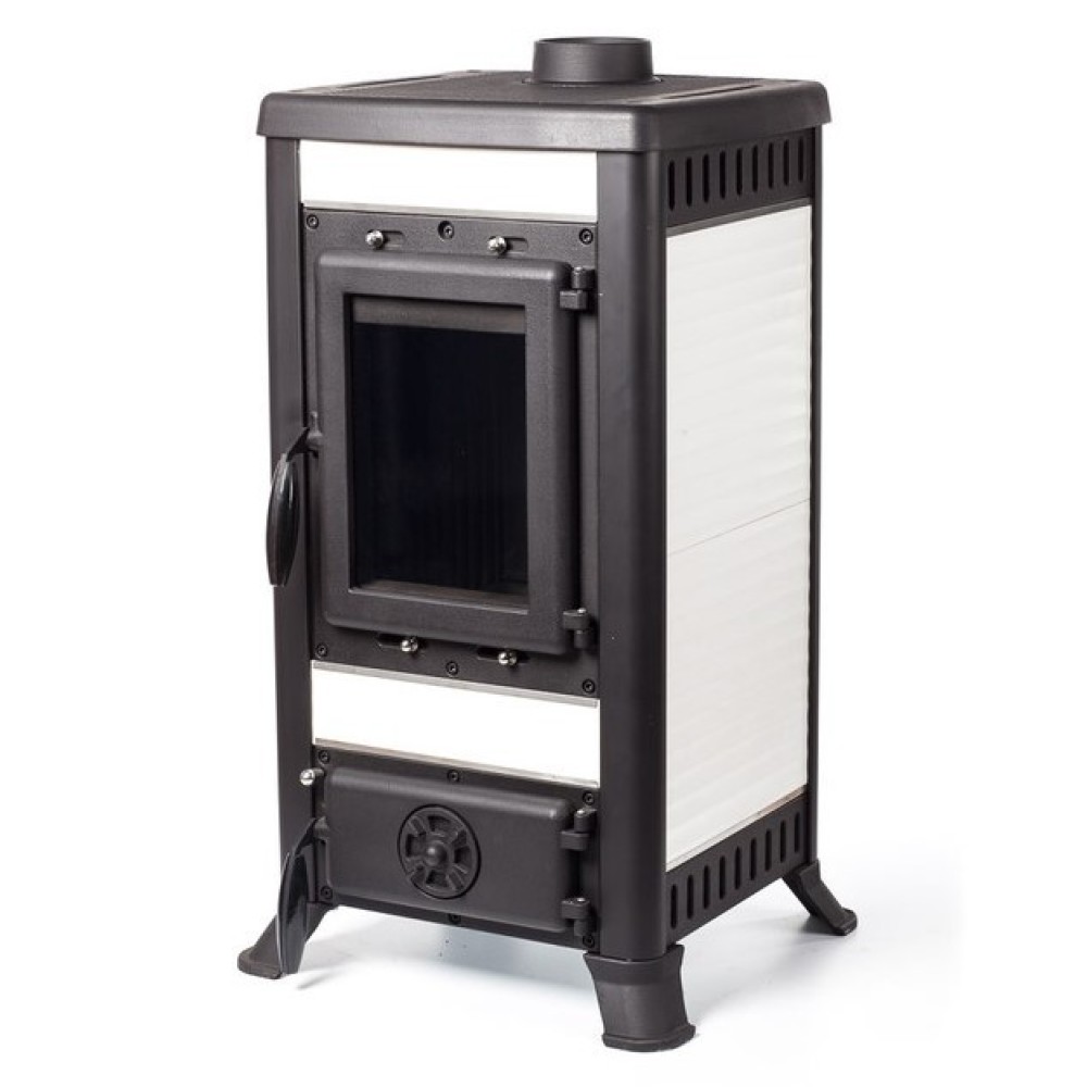 Fireway (Фаервэй) KLEMENS I белый – это шикарная печь с изысканным утонченным дизайном. Выполнена модель из чугуна, а этот металл по праву является самым надежным и долговечным. В топочную камеру можно загрузить дрова длиной до 35 см. Устройство, высотой 86 см не занимает много места на полу. На боковых стенках расположена красивая футеровка из белых чугунных плит.