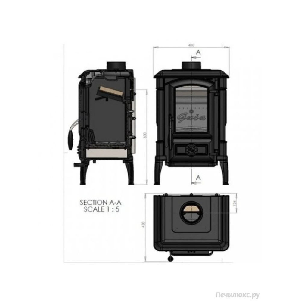 | Вид топливаБрикеты/Дрова | Высота, см72,8 | Габариты (ВхШхГ), мм728x480x435 |