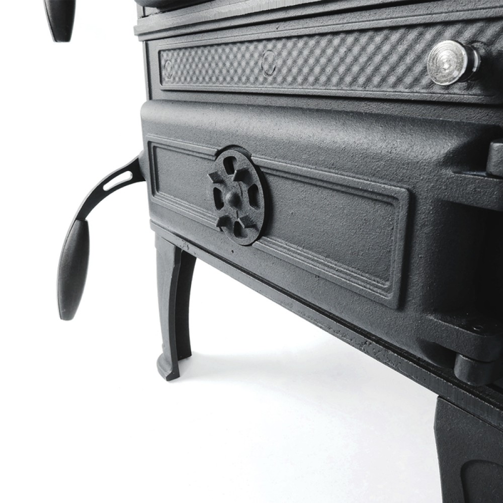 - Первичный и вторичный регулятор тяги воздуха в печи, позволяющие ускорять или замедлять процесс горения