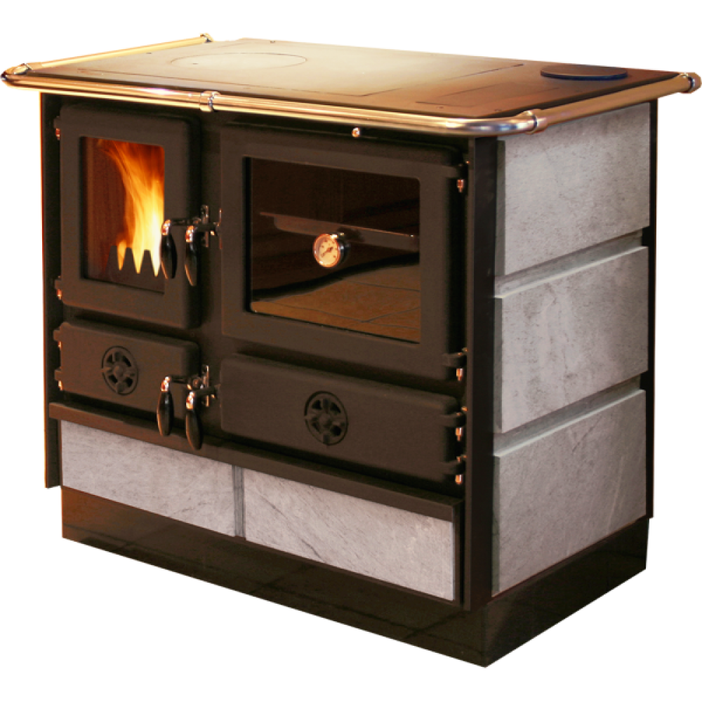 - Дверцы топки и духовки укомплектованы термостойкой стеклокерамикой