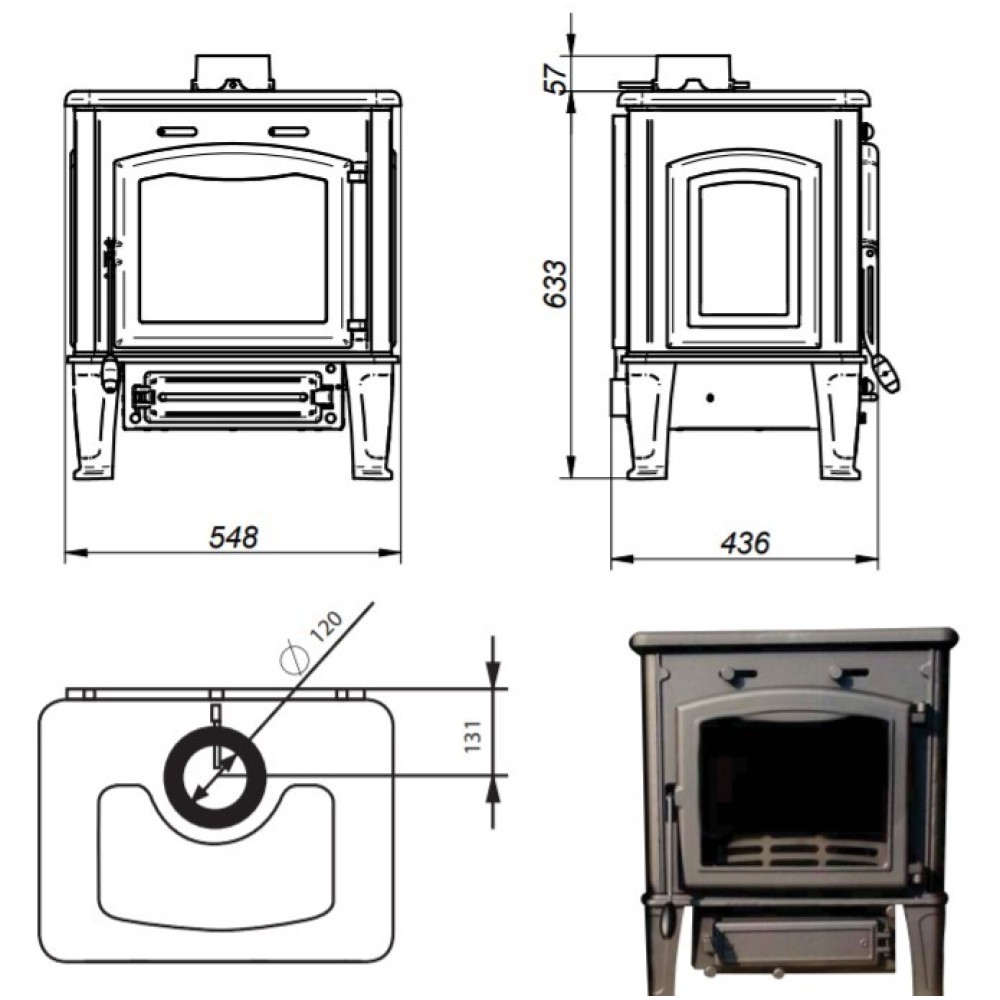 | Вид топливаДрова | Высота, см69,2 | Габариты (ВхШхГ), мм692х548х436 |