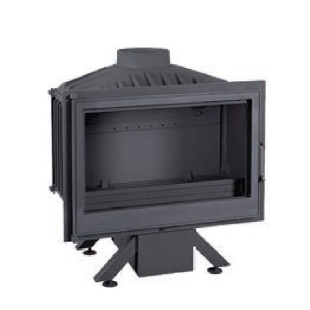 Большой популярностью среди покупателей пользуется такой долговечный и прочный материал — чугун, который применяется для производства рассматриваемой топки Ferguss (Фергусс) FG17 Air ext clapet, в дымоходной части которой встроена шиберная задвижка для регулирования движения дымовых газов. Для вывода продуктов сгорания необходимо сконструировать дымоход, диаметром подключения 180 мм.