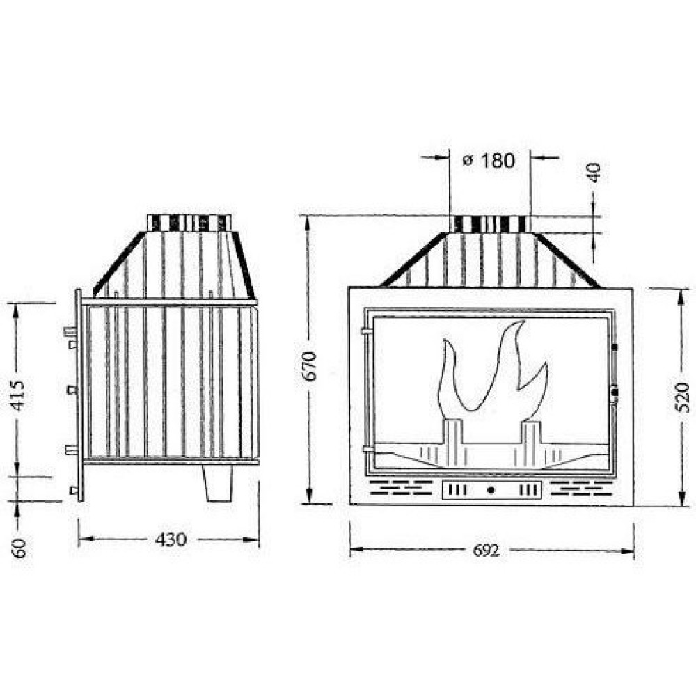 - Диаметр дымохода 180 мм