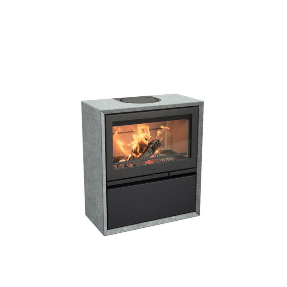 Печь-камин Contura (Контура) 320T, талькомагнезит, чугунная дверца, черный отделан натуральным камнем, который обеспечивает наиболее лучшую аккумуляцию тепловой энергии. Камин обладает привлекательным внешним видом и станет достойным украшением дома, привнеся в него теплую и уютную атмосферу.