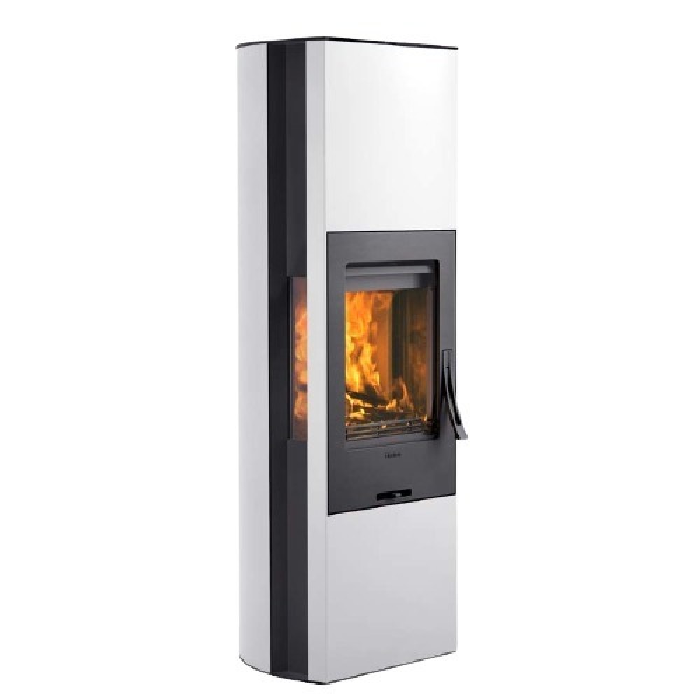 Contura (Контура) 35 высокий, чугунная дверца, белый – это современная печь с привлекательным дизайном. Дверца камина выполнена из чугуна, а корпус изготовлен из стали, что гарантирует прочность и длительный срок службы. Жаропрочное стеклом оснащено уникальной системой, благодаря которой не образуется сажи в процесс горения.