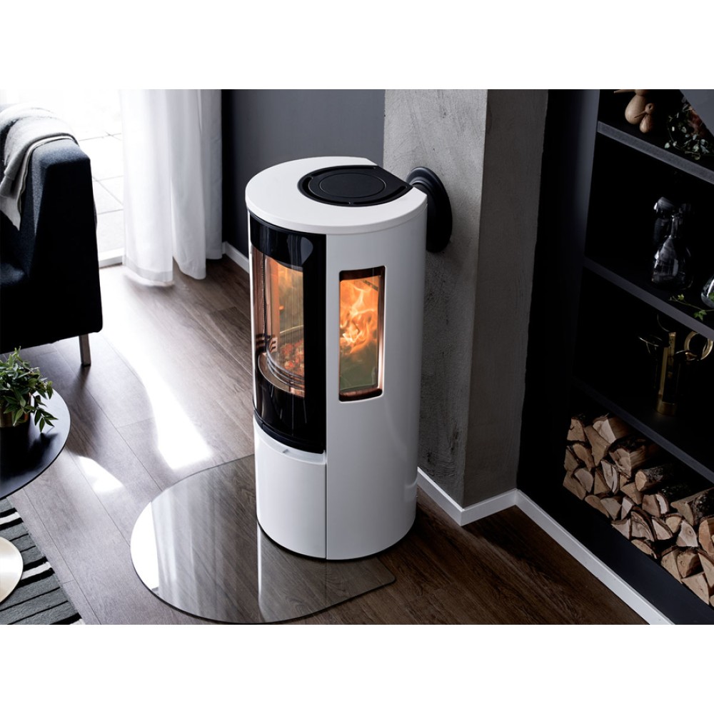 Печь-камин Contura (Контура) 556G:1 Style, стеклянная дверца, белый выполнена в элегантном дизайне и имеет цилиндрическую форму, что расширяет возможности установки, т.к. печь будет отлично смотреться даже в углу комнаты. Камин оснащен большой стеклянной дверцей, благдаря которой открывается изумительный обзор за пламенем.