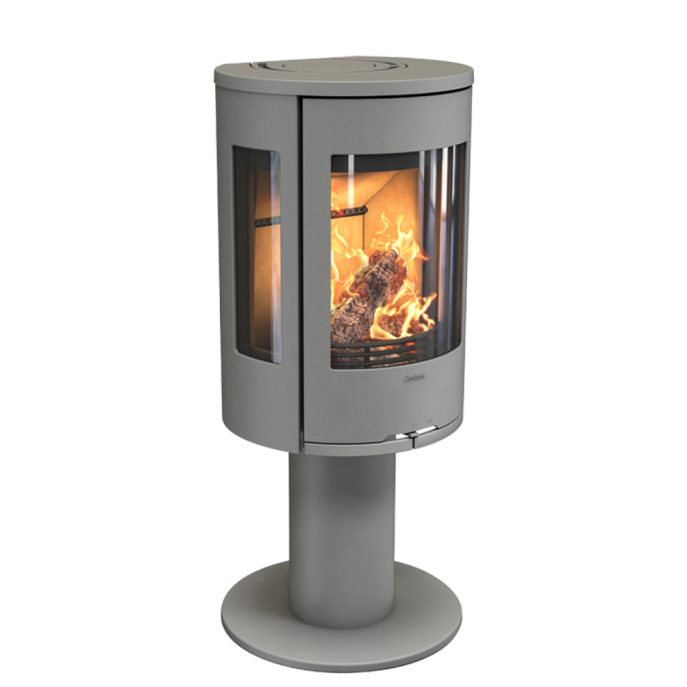 Печь-камин Contura (Контура) 586:1 Style, чугунная дверца, серый выполнена в стиле модерн с использованием стали и чугуна в качестве материалов изготовления. Камин оснащен фронтальным и широкими боковыми стеклами, благодаря которым увеличивается угол ообзора за пламенем. В данной версии камин поставляется на металлическом пьедестале.