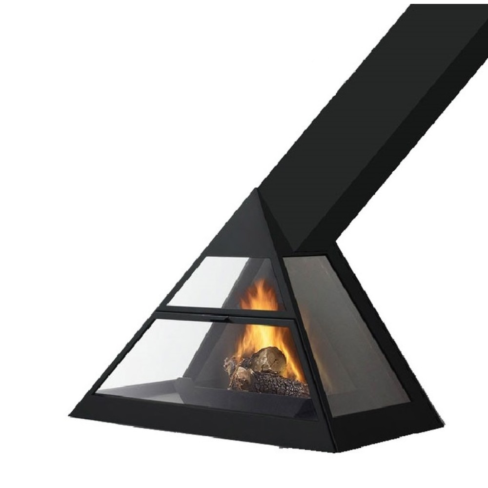 TRAFORART (Трафорарт) ADMETO FRONTAL труба вправо - современный камин с трехсторонним остеклением и наклонной трубой дымохода. Прибор предназначен для подвесной установки в помещении. Предусмотренная производителем система двойного дожига обеспечивает малый расход сухих дров. Технологичная модель сможет удовлетворить любые технические и эстетические потребности пользователя.