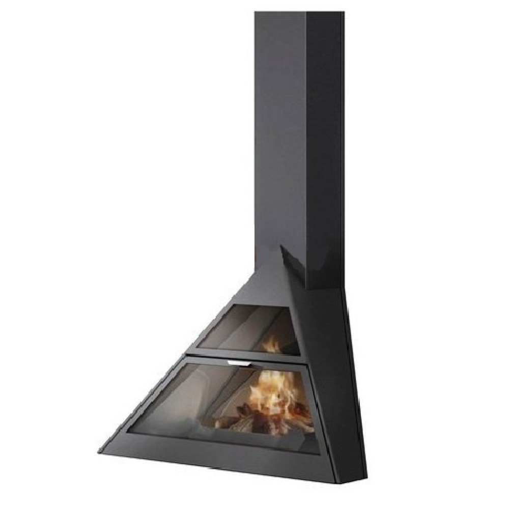 Модель углового подвесного камина TRAFORART (Трафорарт) ADMETO RINCON крепление к стене выполнена в современном стиле. Прибор с корпусом из высококачественной стали покрашен черной краской, устойчивой к воздействию значительных температур. Оборудование характеризуется превосходной прочностью и долгим сроком службы. Устройство имеет прямой тип остекления.
