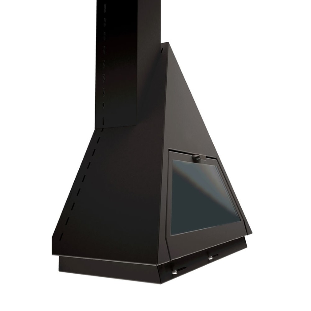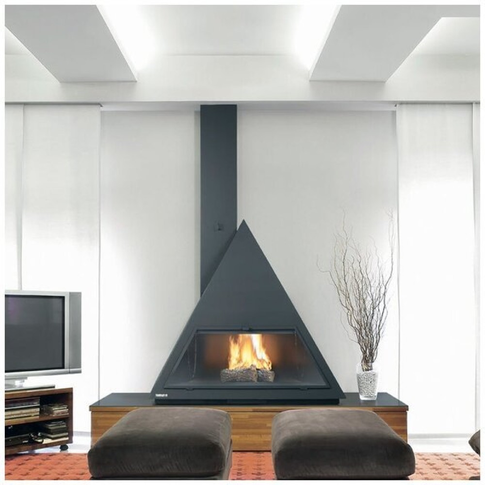 - Треугольный пристенный камин с откидной дверцей